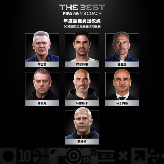 国际足联(FIFA)公布2025年度各项集体及个人大奖候选名单,名单由国际足联及其他足球相关机构代表组成的专家小组制定。其中男子最佳球员(足球先生)11名候选、女子最佳球员17名候选;男子最佳门将8名候选、女子最佳门将7名候选;男子最佳教练7名候选,女子最佳教练5名候选;男女子最佳阵容各个位置分别22名候选。