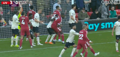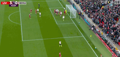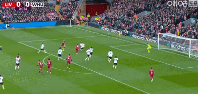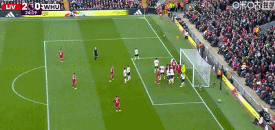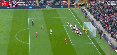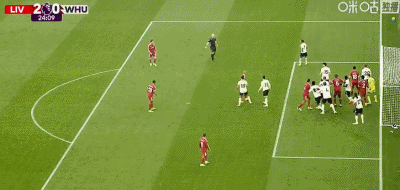第24分钟,索博斯洛伊开出角球,范戴克头球建功,利物浦2-0西汉姆联